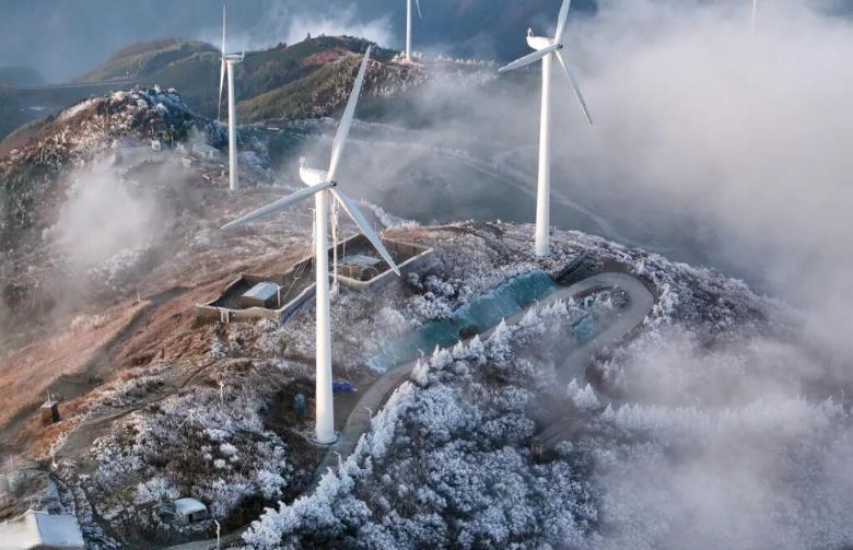 登上海拔1314米的青梅尖,只见雨凇雕琢的冰花世界,漫山的松树与灌木化为玉树琼枝。山风拂过,垂落的冰挂如珠帘轻响,叮当作响。