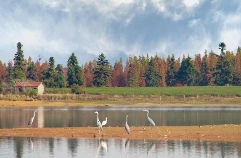在兰湖畔,斑嘴鸭自在游弋,白琵鹭优雅踱步,苍鹭倏然捕食,鸬鹚列阵翩飞,更有东方白鹳、鹗等国/家/级保护鸟类,以及黑脸琵鹭等全球濒危珍稀鸟类的身影。
