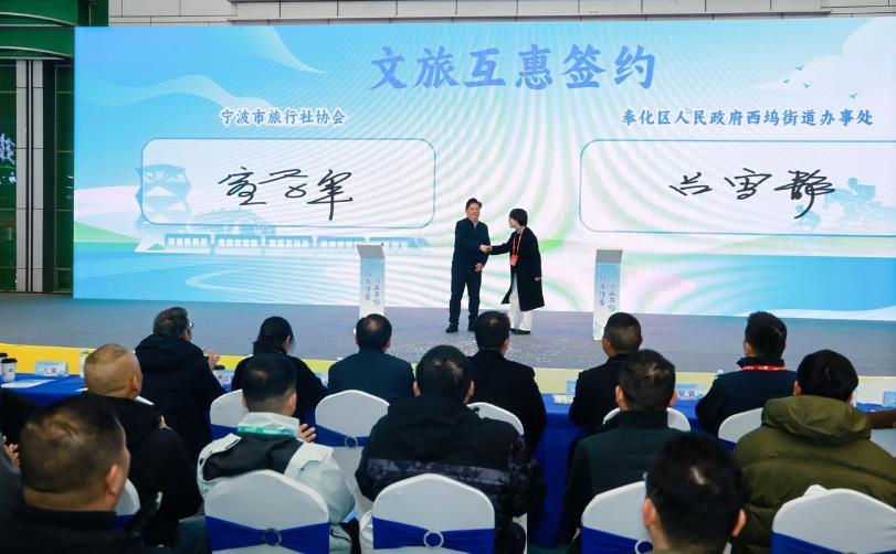 推动农文旅深度融合,离不开产业各方的紧密协作,两项重要战略合作现场签约:宁波市甬教餐饮服务有限公司与宁波市奉化区盛西强村集体经济发展有限公司就 “农业品牌共建” 签约,旨在打通优质农产品从田间到餐桌的稳定渠道;宁波市旅行社协会与西坞街道办事处就“文旅互惠”签约,标志着西坞正式纳入宁波主流旅游产品线路,将吸引更多团队游客到访。