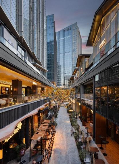 四大主题广场各具特色,串联起艺文事件、城市界面与浪漫场景,形成多个尺度宜人、视野交织的公共空间,打破商业空间的体验边界,营造出充满探索趣味的游逛动线。