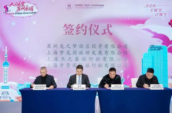 发布会上,苏州龙之梦酒店投资有限公司与上海旅游商代表达成合作签约,旨在深化渠道合作,搭建资源与市场桥梁,让上海市民更便捷体验高新区冬季文旅产品,推动“沪苏同城化”从交通便利走向文旅消费同频。