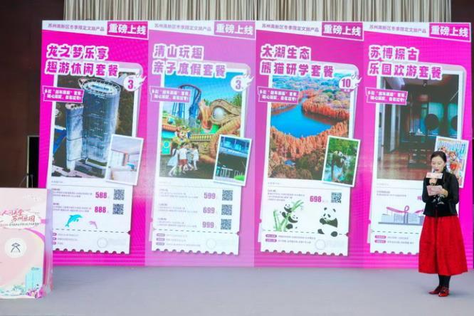 与此同时,发布会现场推出四款高新区冬季限定文旅套餐,涵盖亲子休闲、轻享度假、深度研学等多类客群,产品组合了苏州乐园、苏州博物馆西馆、酒店住宿及太湖生态熊猫研学等核心资源,匹配市民游客多元化的冬季出游需求。