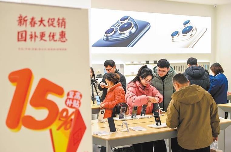 1月5日,消费者在浙江省湖州市德清县一卖场选购电子产品。随着首批625亿元国补资金下达,新一轮消费品以旧换新/政策全面落地。姚海翔摄(中经视觉)