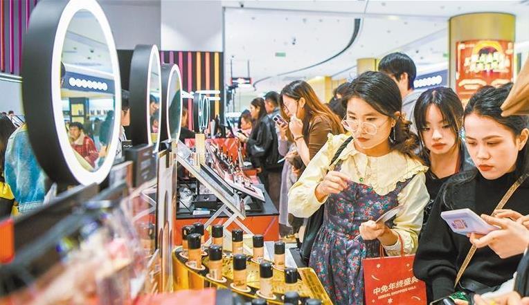 1月2日,游客在cdf海口日月广场免税店选购免税商品。自海南自贸港启动全岛封关以来,离岛免税购物热度持续走高。苏弼坤摄(中经视觉)
