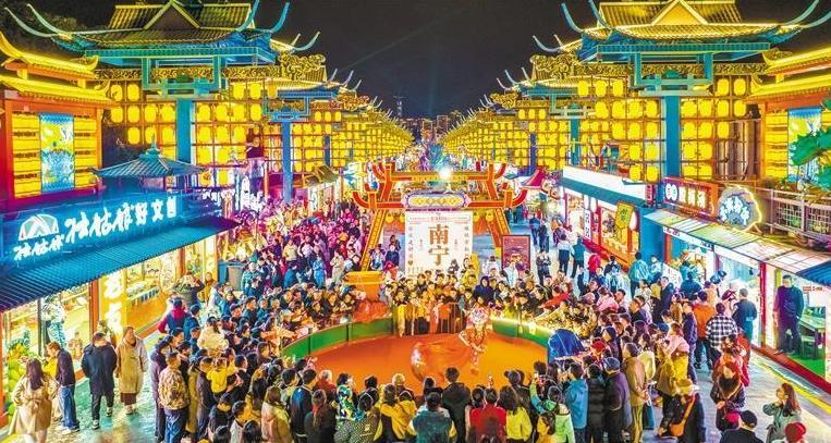 1月1日,广西南宁市良庆区“南宁之夜”文旅街区灯火璀璨,市民与游客逛市集、品美食、观表演,乐享假日。曾祥忠摄(中经视觉)