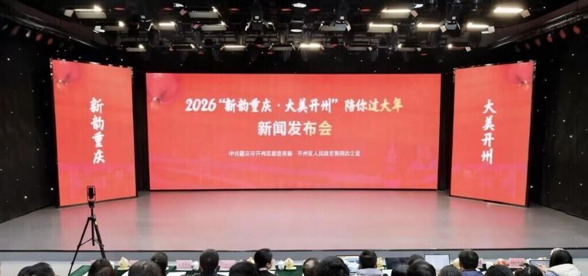 新春将至,年味渐浓。今(8)日,重庆市开州区召开2026“新韵重庆·大美开州”陪你过大年新闻发布会。会上宣布,今年1月至3月,开州将围绕“欢乐喜庆、祥和有序、促进消费、惠民兴业”的主线,精心策划“大美开州陪你过大年”6大类38项文旅主题活动及“开州金厨品牌周”活动,推出一系列惠民举措,为广大市民和游客奉上一场充满烟火气与文化味的暖心年味盛宴。发布会上,开州区重点推介了公共文化惠民品牌“壹圆剧场”及其全新IP形象“民小宝”,展现开州以文化浸润佳节、以创新温暖民心的新春图景。