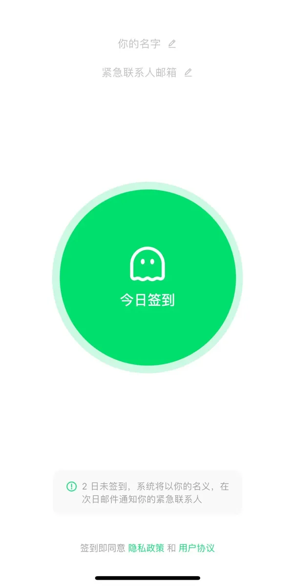 据介绍,该应用是为独居人群打造的轻量化安全工具,用户需要设置紧急联系人并签到,若连续多日没在应用内签到,系统将于次日自动发送邮件告知紧急联系人。
