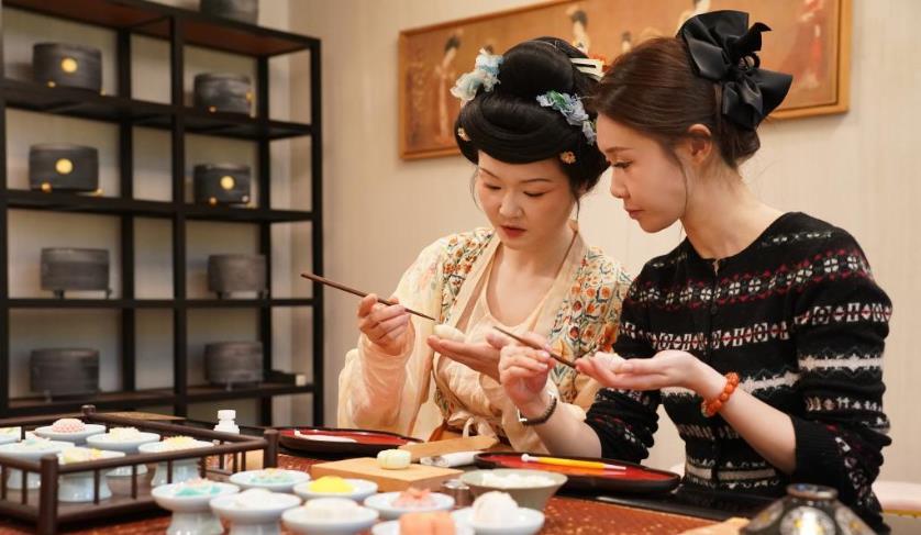 李欢认为,传统文化是取之不尽的创意源泉,而依托传统文化创新打造的消费形式和场景,更能让人们具象化地感受中华历史文化的魅力。因此,李欢和她的团队近年来不断拓宽品牌的经营方式,致力于搭建场景,让唐果子、唐茶文化走进国内外文化交流活动现场;依托各类艺术和商业场所,推出唐果子制作体验项目,吸引游客和研学团队参与。她们还整合唐茶等唐代生活的相关文化资源,向客户提供国风活动策划与演绎、教学培训、下午茶点、旅游伴手礼等服务和产品,让千年前的风雅韵味,化作更多人可感、可触、可尝的文化信物。