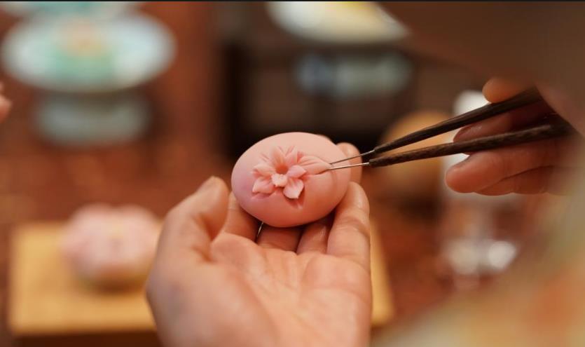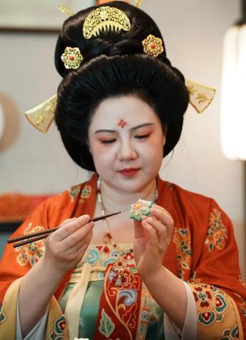 唐果子,是起源于唐代的传统特色糕点,佐茶而食,其造型精致、色彩丰富,曾在唐代宫廷贵族中流行。在西安,有着多年烘焙工作经验的“80后”李欢,一次偶然的机会与唐果子结缘。2020年,李欢与志同道合的伙伴成立公司,创立了“开元风雅”品牌,李欢也成为了品牌的主理人。她和团队埋首于唐代饮食文献之中,行走于各大博物馆内,从唐代文物的花纹图案中汲取灵感,结合健康饮食和现代口味需求精心调整配方,成功“复现”出一枚枚精巧的唐果子,受到人们的欢迎。