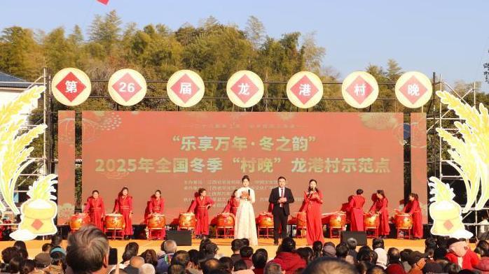 龙港“村晚”的红火离不开当地乡村振兴产业的发展。近年来,依托万年贡米核心原产地优势,龙港村成功引进两家大米加工企业,不但大幅提升了生产效率和产品质量,还提升了“万年贡米”特色农产品品牌知/名度,为农户提供了稳定增收渠道。2025年,龙港村村集体经济收入达40余万元。