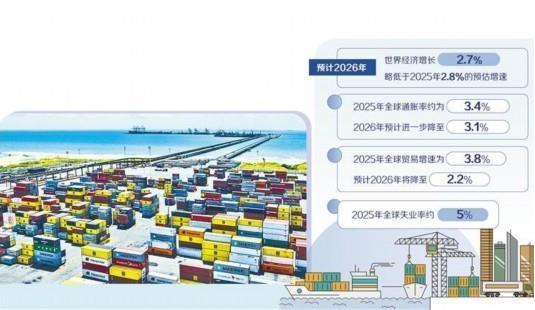 《2026年世界经济形势与展望》报告指出,尽管美国在2025年大幅加征关税,但在消费支出稳健和通胀回落的支撑下,全球经济表现出超预期韧性,维持了增长势头。然而,深层次的脆弱性依然存在。投资持续低迷和财政空间有限,正在拖累经济活动,并增加了全球经济可能面临长期低增长的风险。报告预测,2026年世界经济将增长2.7%,略低于2025年2.8%的预估增速。