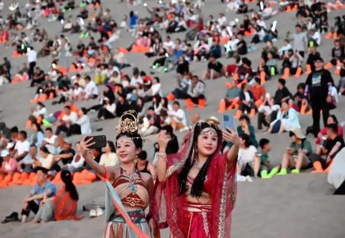 当暮色漫过鸣沙山的脊梁,晚风轻抚月牙泉的碧波,一场万名游客自发共唱的“落日合唱派对”在甘肃敦煌火热上演。大漠为幕布,沙丘为舞台,不但有手机电筒的“满山星光”,还有“生成式AI+多模态互动”技术联动线上线下,直播间数十万用户同步沉浸式参与,全网曝光量突破12亿次。