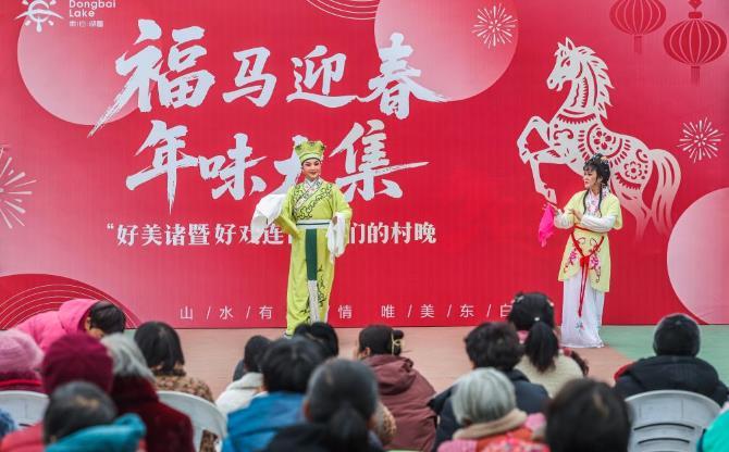 1月23日,浙江省诸暨市东白湖镇在镇乐龄中心举办“福马迎春”年味大集暨“好美诸暨 好戏连台”村晚活动。舞台上村民们自编自演的越剧、舞蹈、旗袍秀等节目精彩纷呈,活动现场同步开展了打麻糍、书法送福、非遗竹编、年画拓印等一系列体验活动以及展示当地农特产和文创产品的“村村有好物”大集等,在欢乐喜庆的气氛中迎接新春。