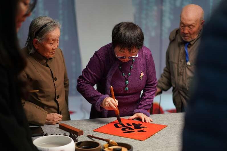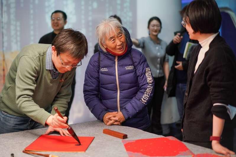 工作人员为读者书写“福”字。中青在线见习记者 胡庆章/摄