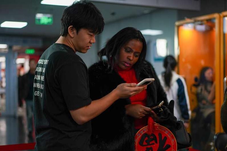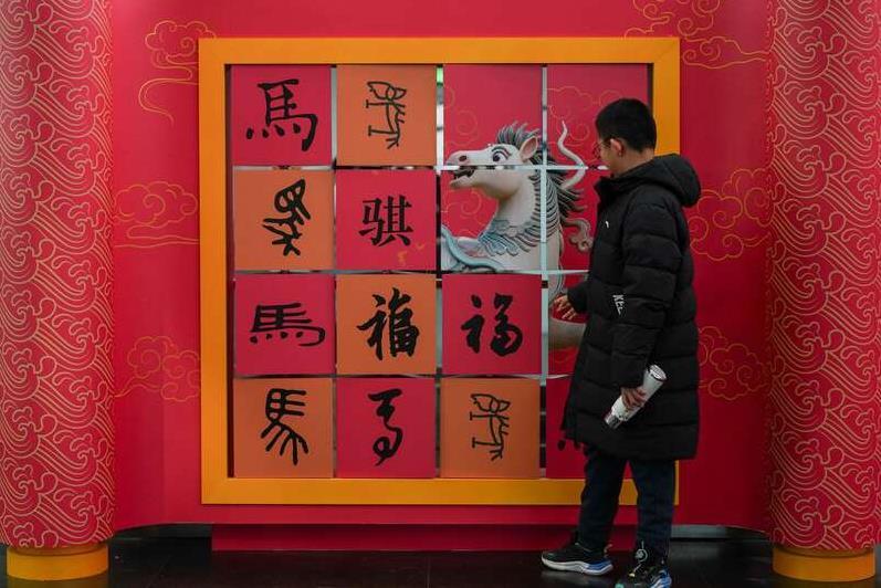 国家图书馆总馆北区二层大厅设置了“福”字和“马”字的翻牌互动区,读者可以观摩不同字体写法。中青在线见习记者 胡庆章/摄