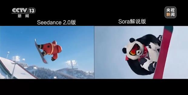 Seedance 2.0与国外Z优秀的视频大模型Sora比较,谁更优秀?本周,记者与视频博主合作进行了测试,记者希望大模型生成一个“大熊猫参加冬奥会并完成单板滑雪内转1980度抓板动作”的视频,给两款大模型分别输入了80字的任务提示词。